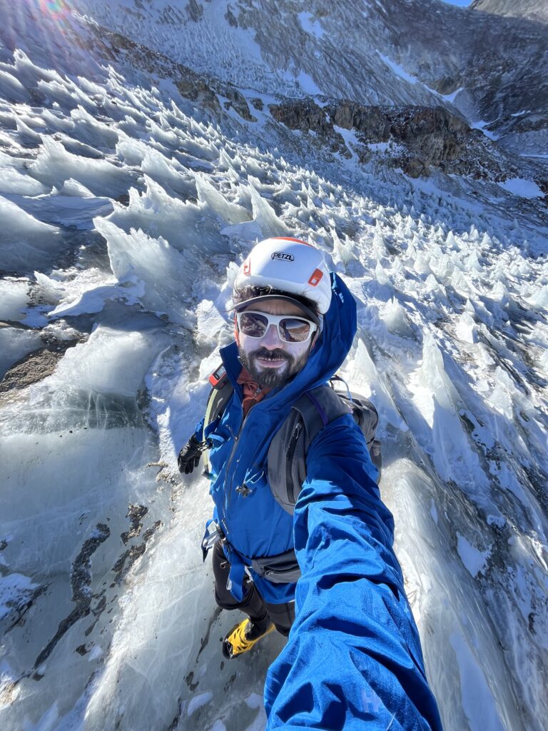 Este año me llegó la M10 Anorak de Patagonia, la que estado usando en diferentes proyectos, y el rendimiento ha sido excepcional. En el ascenso al Altar Falso me arrastré con ella por canalones de hielo y roca sin daños e hice varios vivacs sin colchoneta, sin molestias.
